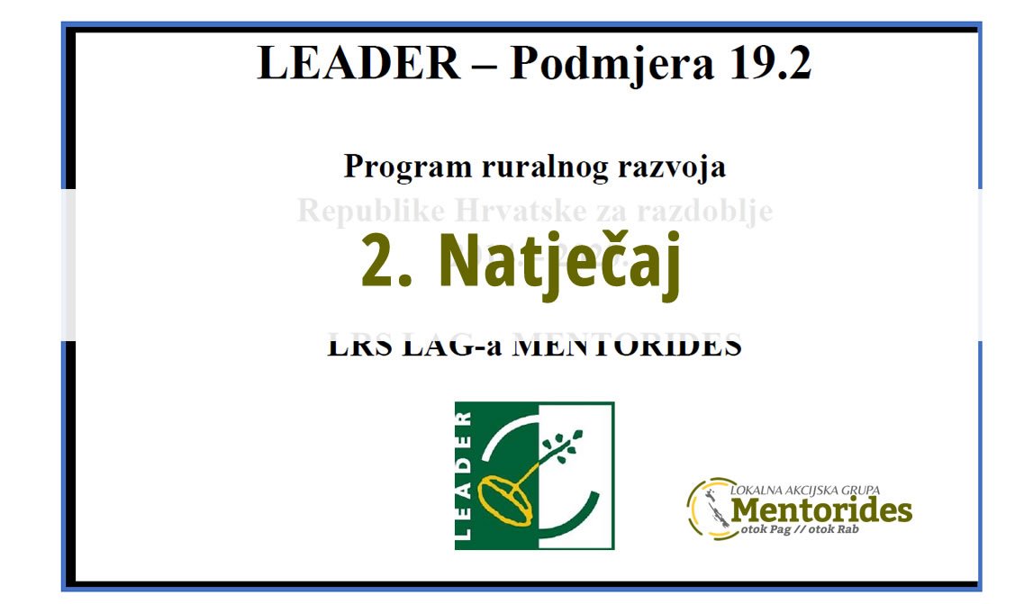 Dana 04. veljače 2020. godine LAG „Mentorides“ objavljuje 2. LAG Natječaj iz LRS LAG-a za TO 1.1.1. „POTPORA RAZVOJU MALIH POLJOPRIVREDNIH GOSPODARSTAVA“, a koji je sukladan TO 6.3.1. iz Programa ruralnog razvoja. Ukupan iznos raspoloživih sredstava po ovom natječaju iznosi 781.441,50 HRK, a visina potpore po nositelju projekta iznosi 15.000,00 eura odnosno 111.634,50 HRK.