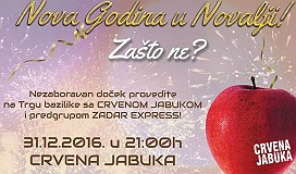 Poštovani čitatelji Službenih stranica Grada Novalje, kako svakodnevno dobivamo vaše upite vezane za doček Nove godine u Novalji ovim putem objavljujemo dio novogodišnjeg programa. 27. 12. 2016. - Klapa Bunari 29. 12. 2016. g. - Neno Belan & Fiumens 31. 12. 2016. g. - CRVENA JABUKA s predgrupom Zadar Express